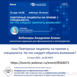 Вебинары Академии Алкон: контактная коррекция для офтальмологов и оптометристов. Тема Повторные пациенты на приеме у специалиста. На что следует обратить внимание?