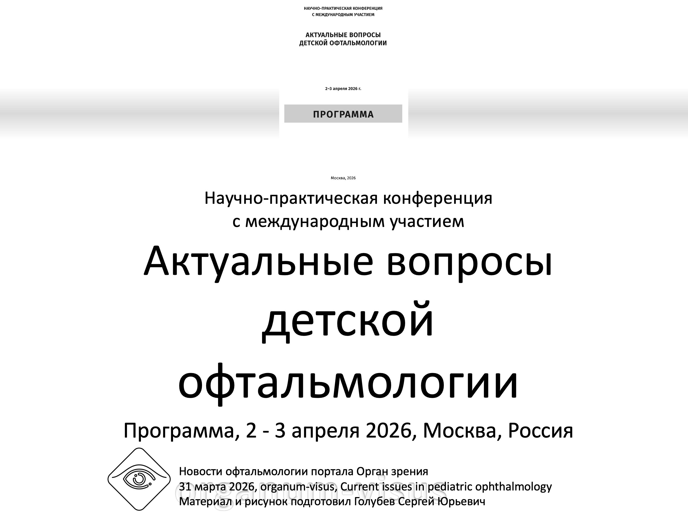 Current issues in pediatric ophthalmology 2026. Program eye conference in Moscow, Russia, #organumvisus