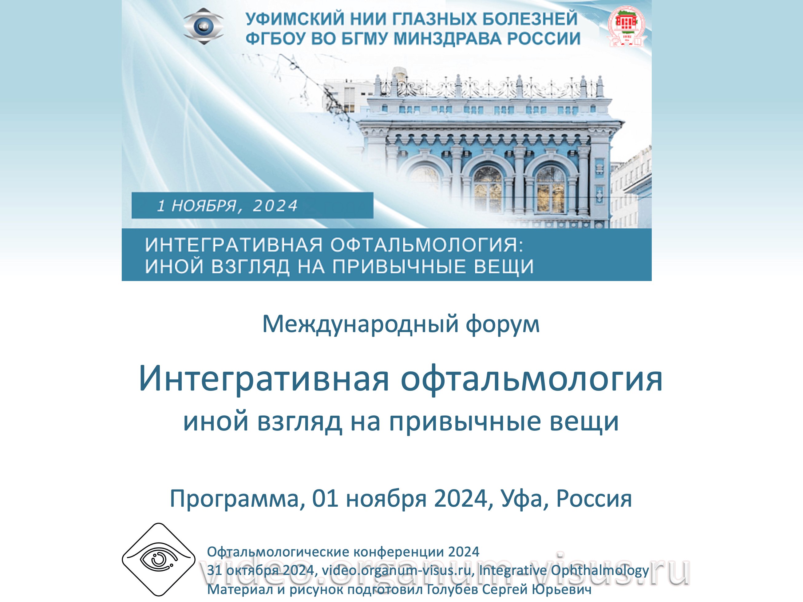 Уфимский НИИ Глазных болезней. Офтальмологические конференции 2024 года. Календарь. Ufa Research Institute of Eye Diseases. Ophthalmological conferences 2024. Информационный партнер портал Орган зрения video.organum-visus.ru