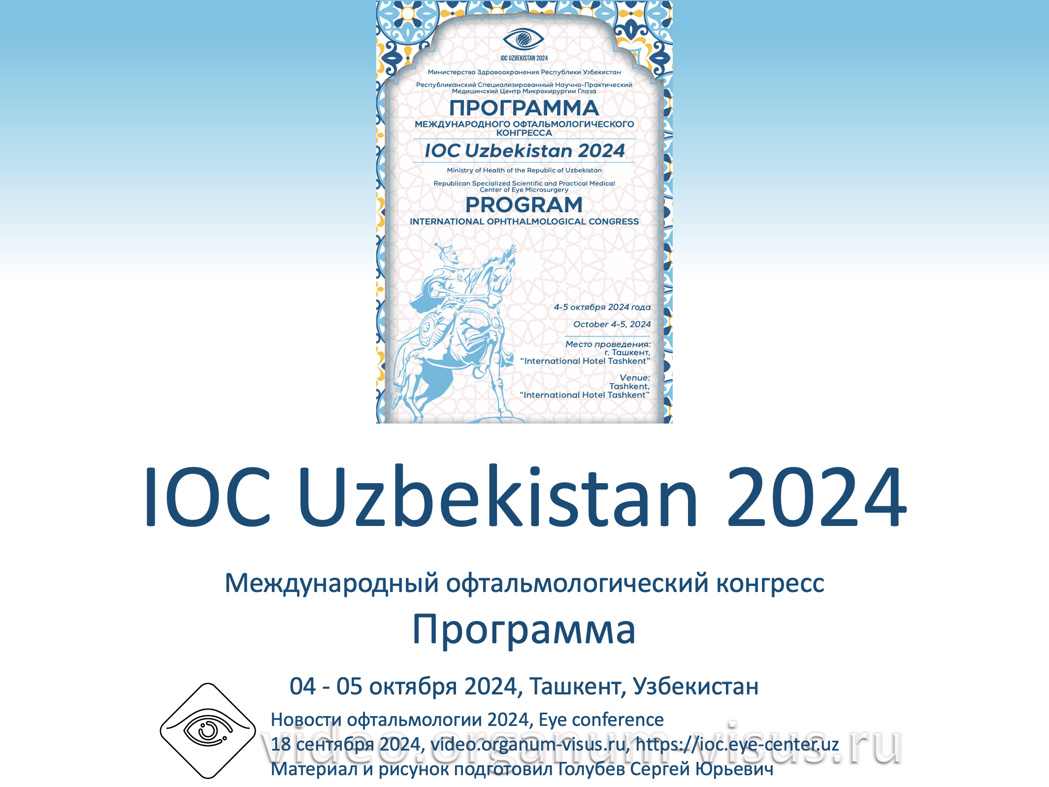IOC Uzbekistan 2024 Анонс конференции офтальмологов в Ташкенте, Узбекистан. Международный офтальмологический конгресс, 4-5 октября 2024 года. Ophthalmologists Conference, Tashkent. Календарь офтальмологических конференций на портале Орган зрения video.organum-visus.ru