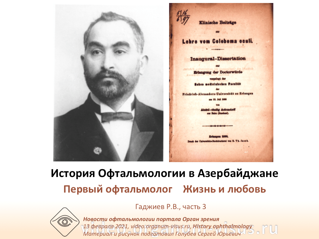 История Офтальмологии в Азербайджане Первый офтальмолог Жизнь и любовь