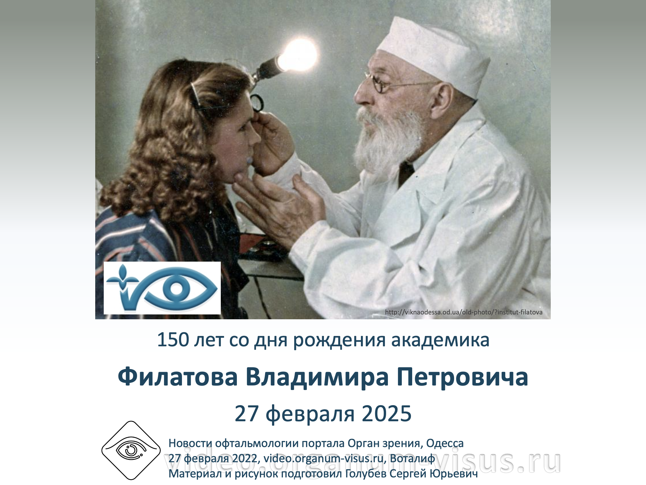 В 2025 году, 27 февраля, исполнится 150 лет со дня рождения академика Филатова Владимира Петровича, основателя уникальной офтальмологической школы.