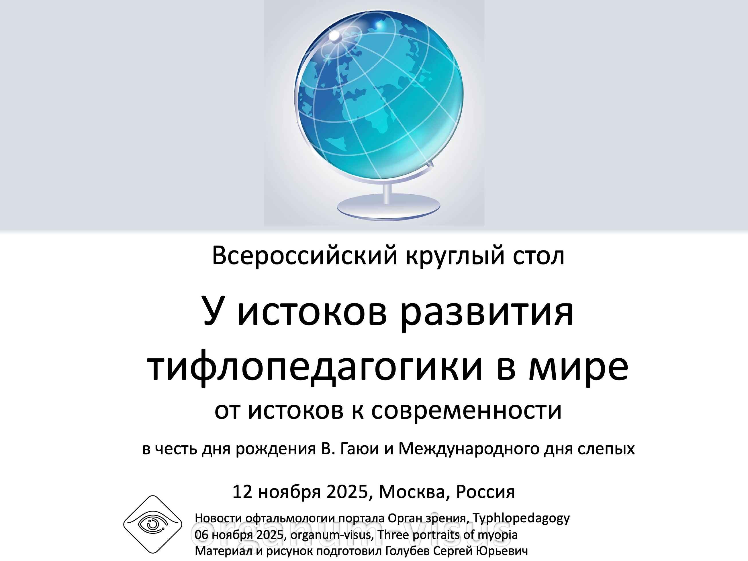 Приглашаем принять участие в работе Всероссийского круглого стола У истоков развития тифлопедагогики. От истоков к современности. В честь дня рождения В. Гаюи и Международного дня слепых.