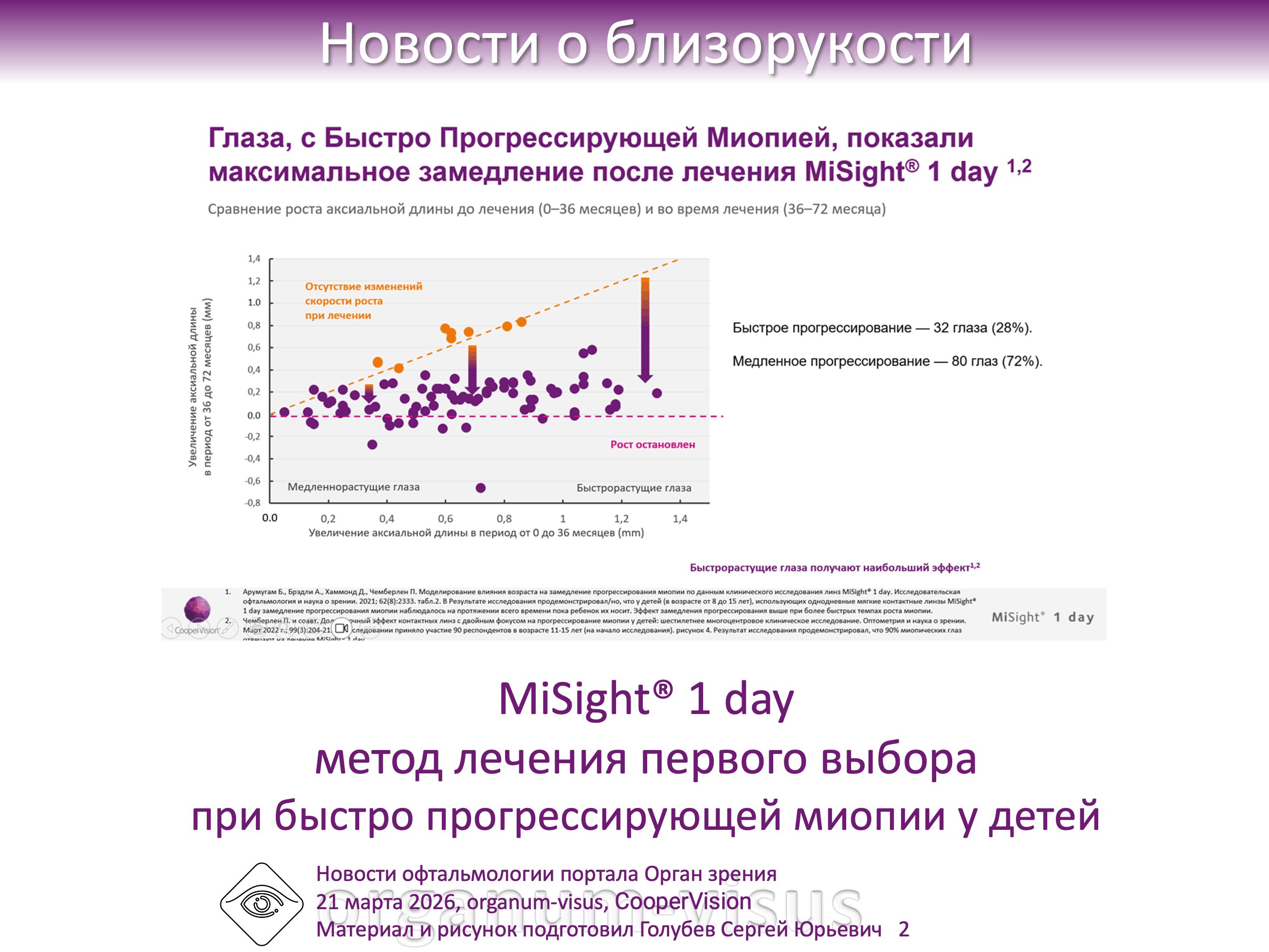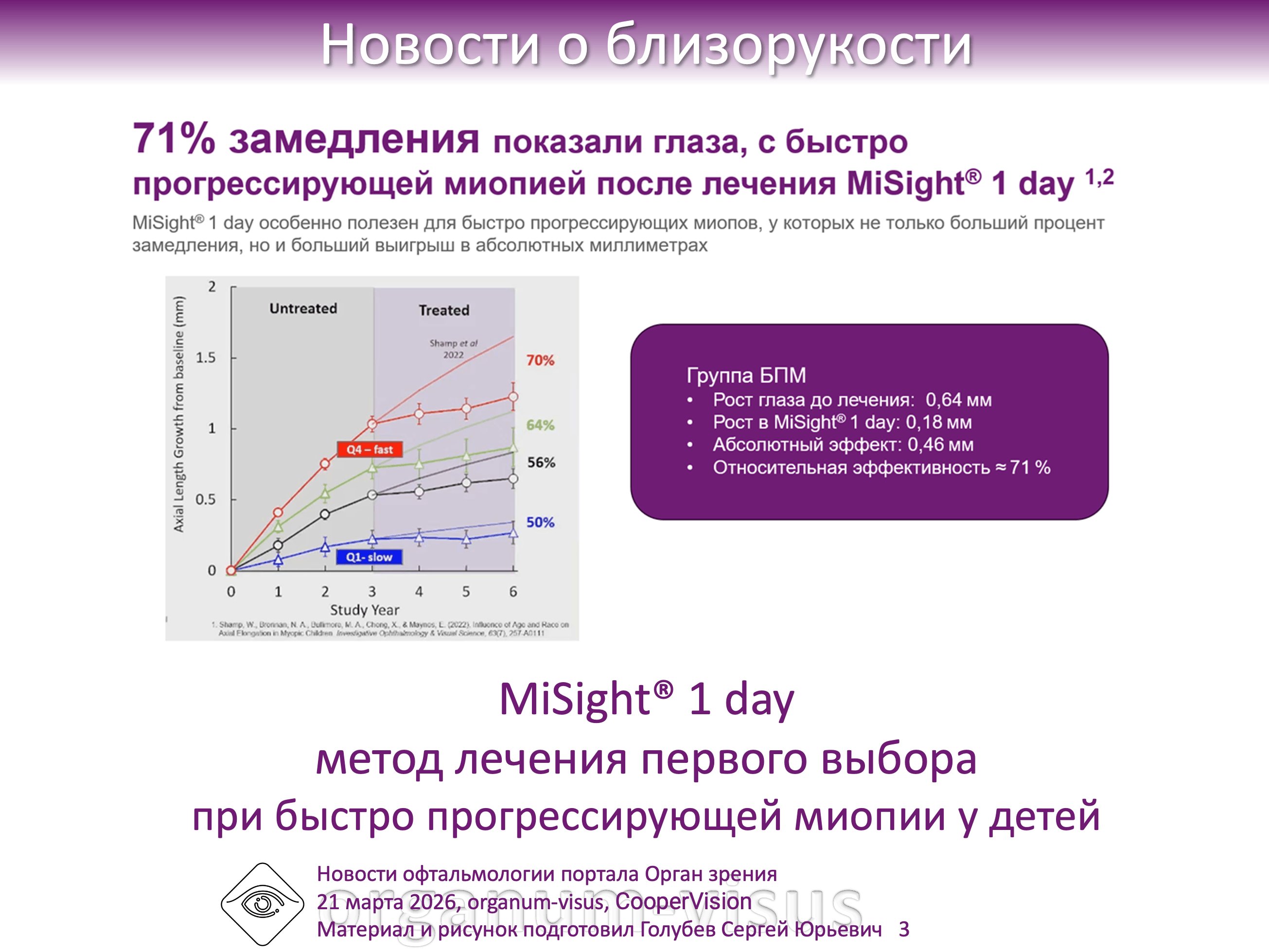 Линзы MiSight® 1 day CooperVision показали отсутствие эффекта «отскока» при замедлении прогрессирования миопии у детей. MiSight® 1 day lenses show no rebound effect in slowing myopia progression in children. Новости о близорукости офтальмологического портала Орган зрения video.organum-visus.ru