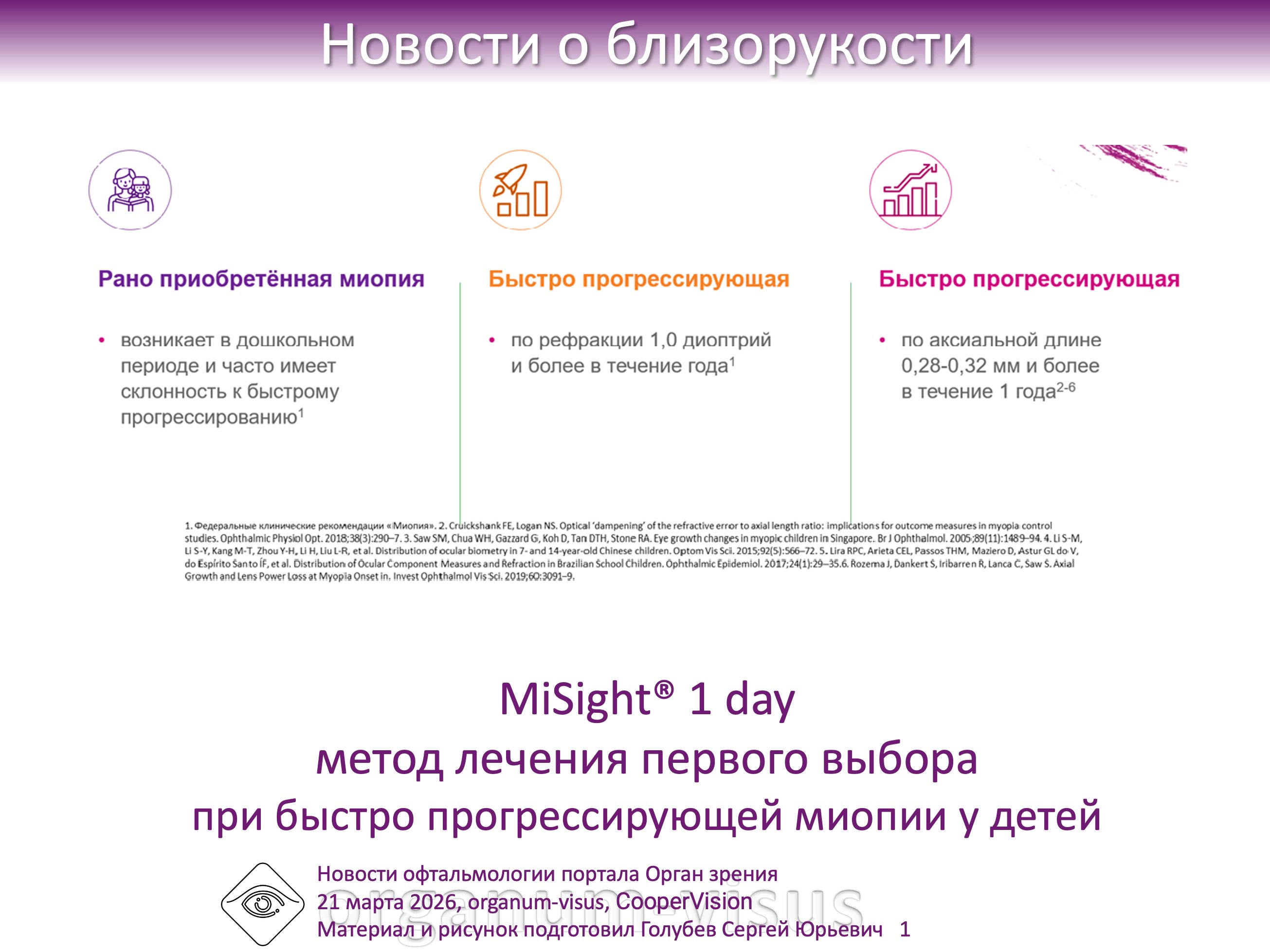 В разделе для специалистов Смотри полезную информацию для приема, статьи о замедлении миопии вообще и исследования линз MiSight 1 day в частности.