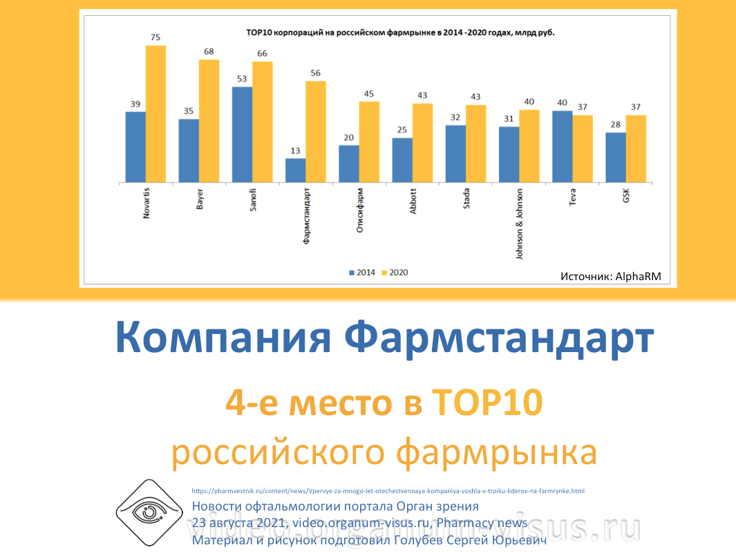 Компания Фармстандарт, Pharmstandard, вошла в TOP10 и заняла 4 место на фармацевтическом рынке России.