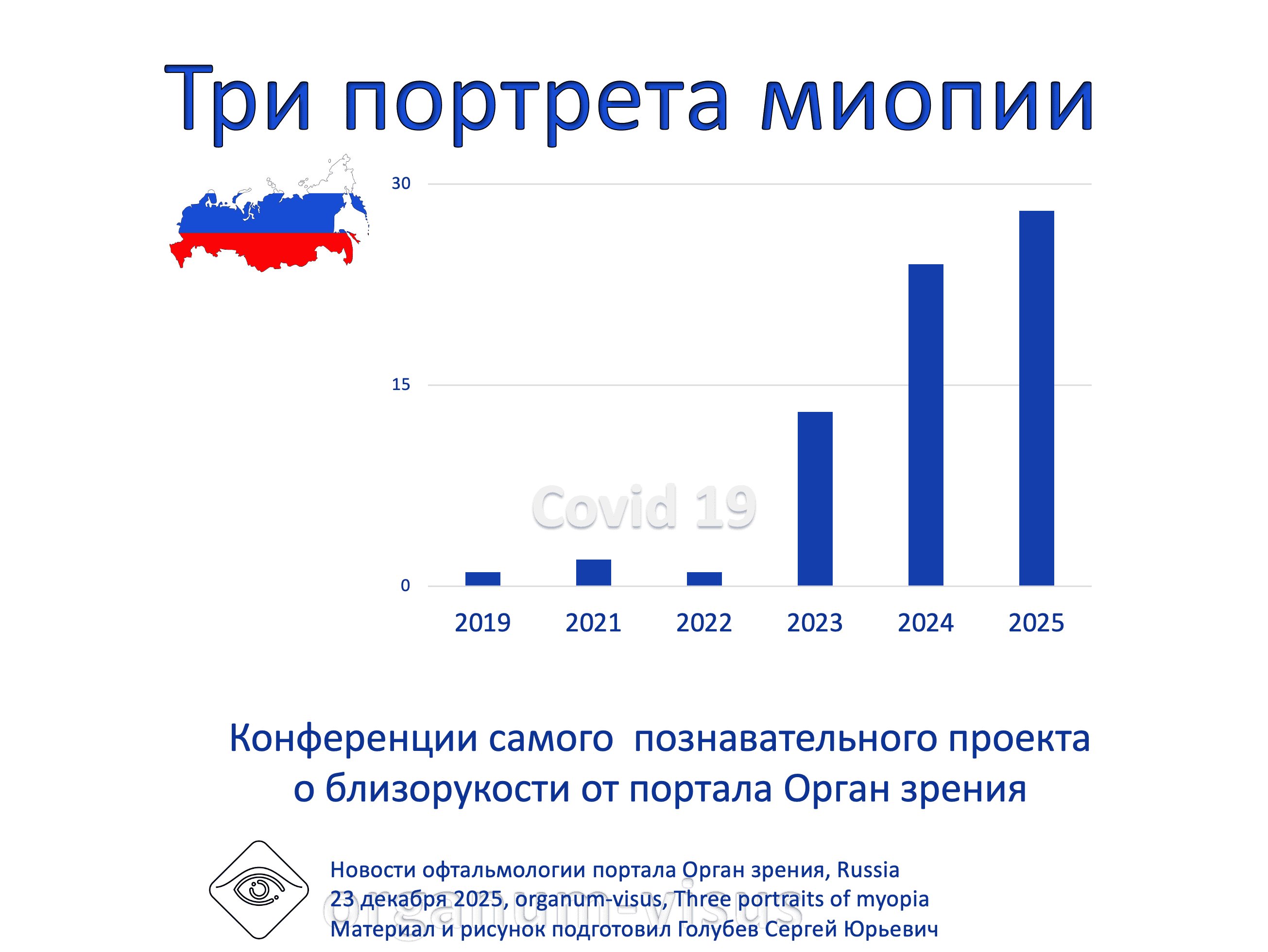 Три портрета миопии. Пятигорск 2025. Познавательный проект портала Орган зрения, Россия, 19 декабря 2025 года. Программа конференции. Three portraits of myopia, Pyatigorsk 2025, Russia. Смотри офтальмологические конференции на organum-visus