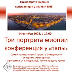 Три портрета миопии. Конференция у "папы" 2025, в очном формате, Анонс 1, Анонс 2, Программа, Отчет