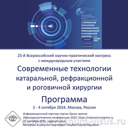 25-й Всероссийский научно-практический конгресс с международным участием Современные технологии катарактальной, рефракционной и роговичной хирургии, oor.ru, mntk.ru, cataract-congress.ru, Анонс 1, Программа