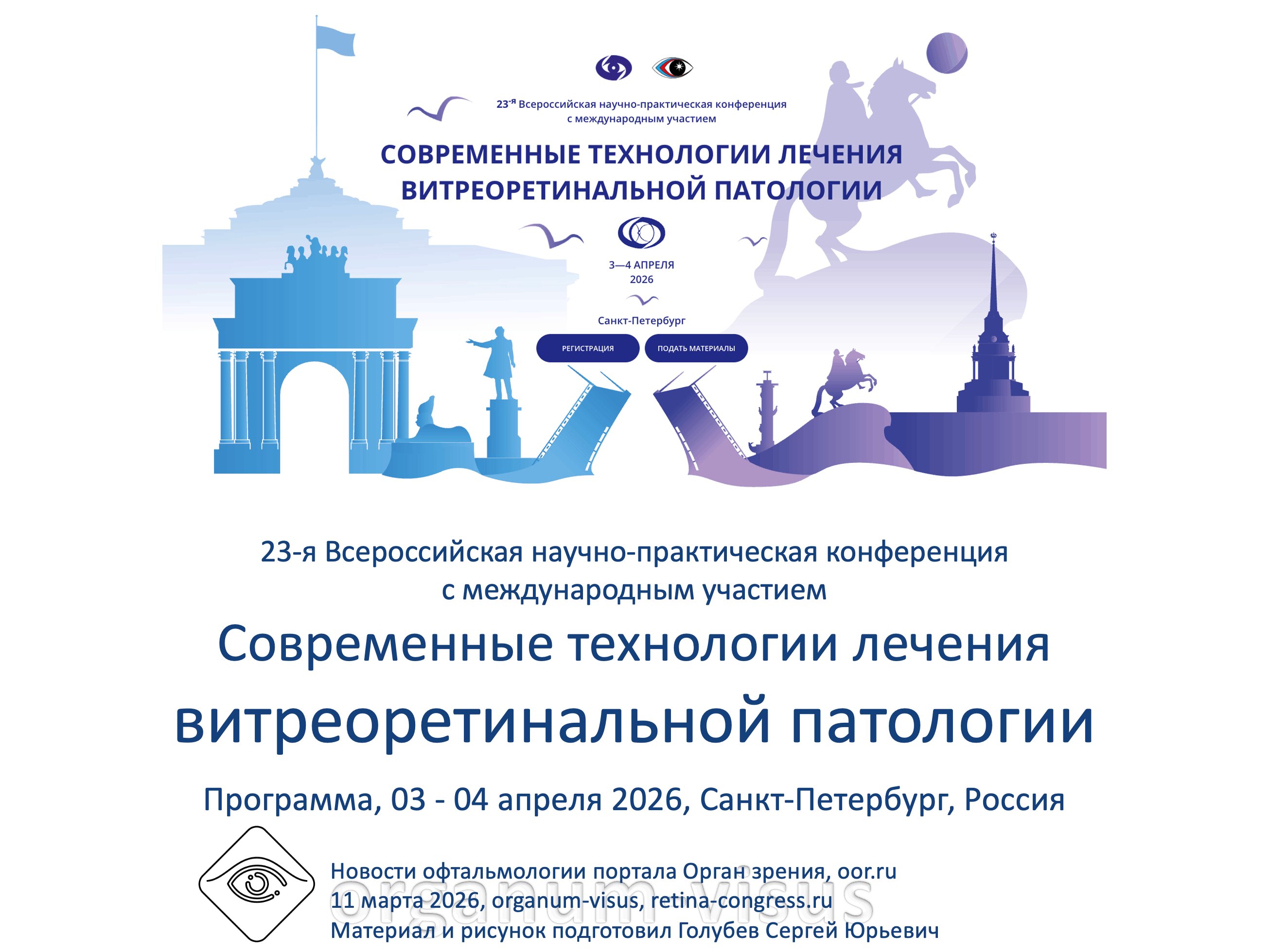 Современные технологии лечения витреоретинальной патологии 2026, 23-я Всероссийская научно-практическая конференция с международным участием, 03-04 апреля 2026 года, Санкт-Петербург, Россия. Общество офтальмологов России, oor.ru Modern technologies for the treatment of vitreoretinal pathology 2026. Информационный партнер электронное СМИ офтальмологический портал Орган зрения organum-visus