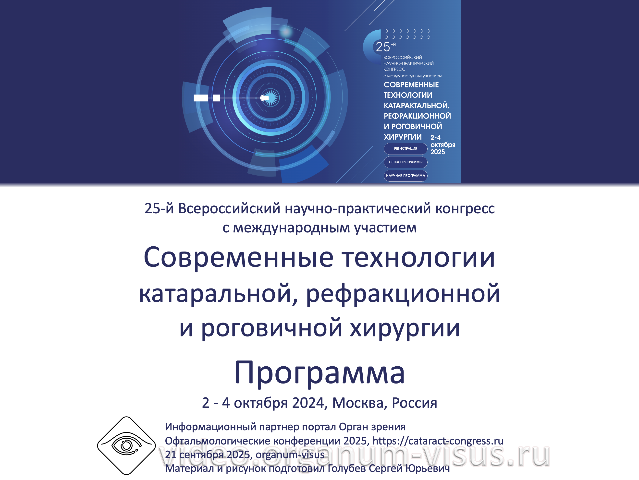 Современные технологии катарактальной роговичной и рефракционной хирургии 2025 Программа 25-й Всероссийский конгресс с международным участием