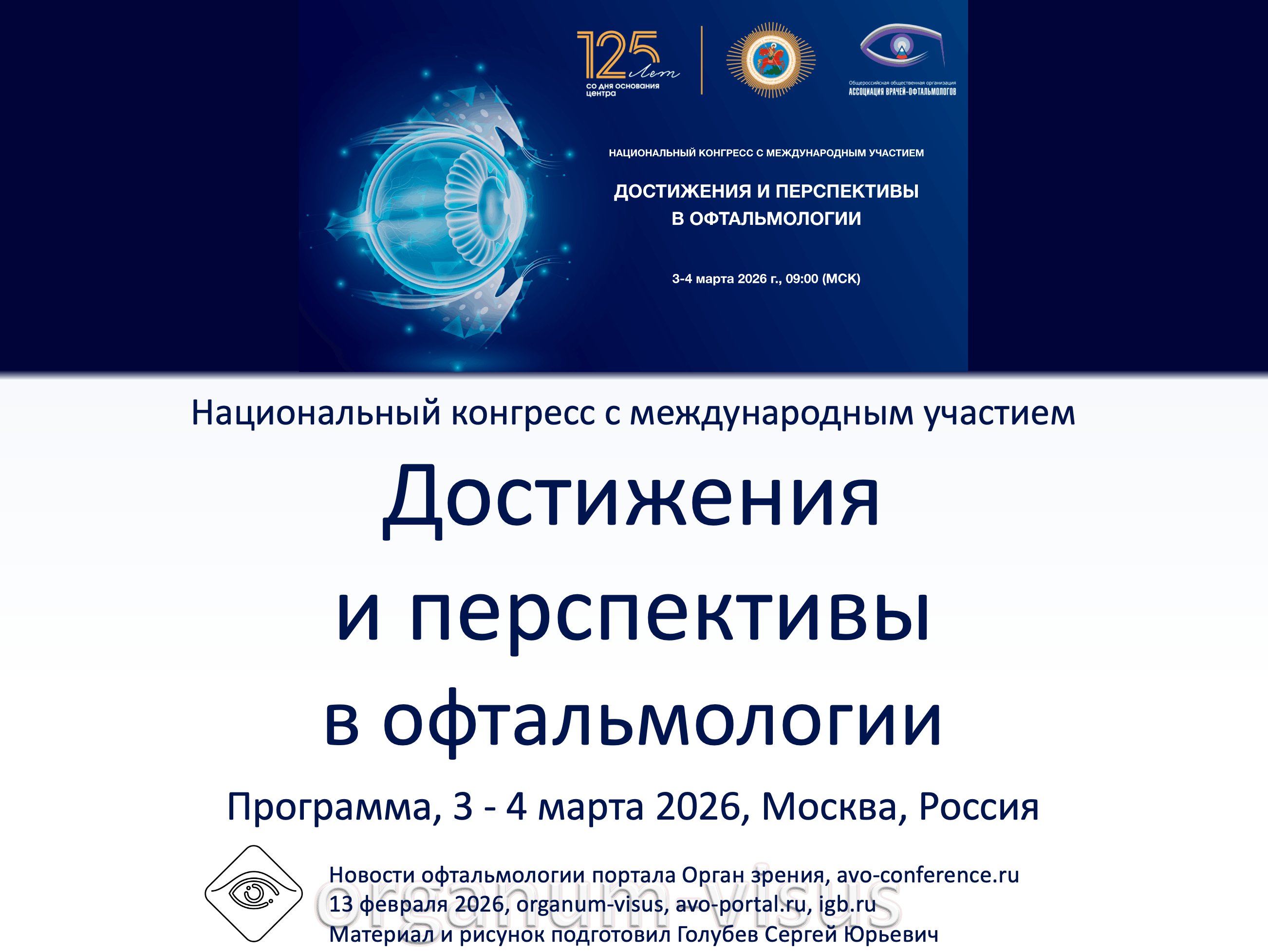 Достижения и перспективы в офтальмологии 2026. Национальный конгресс с международным участием, 3-4 марта 2026 года, Москва, Россия. Achievements and Prospects in Ophthalmology 2026. Информационный партнер электронное СМИ офтальмологический портал Орган зрения organum-visus