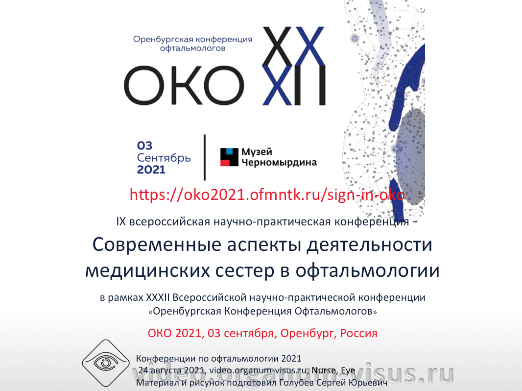 IX всероссийская научно-практическая конференция Современные аспекты деятельности медицинских сестер в офтальмологии в рамках XXXII Всероссийской научно-практической конференции «Оренбургская Конференция Офтальмологов» ОКО 2021, 03 сентября, Оренбург, Россия. Информационный партнер офтальмологический портал Орган зрения. Зарегистрируйся.