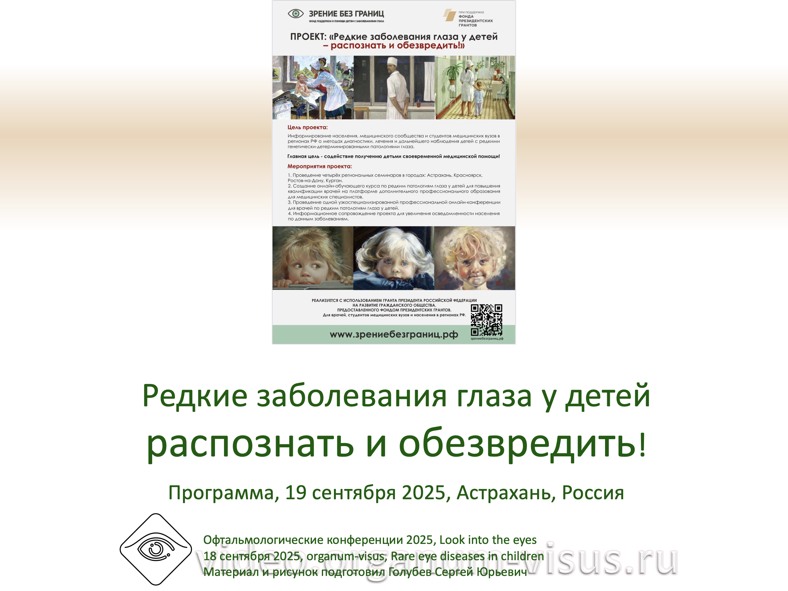 Посмотрите в глаза. Рак у ребенка можно увидеть. Благотворительный фонд Зрение без границ, Россия. При поддержке Фонда президентских грантов, зрениебезграниц.рф Look into the eyes. Retinoblastoma. You can see cancer in a child. Информационный партнер электронное СМИ офтальмологический портал Орган зрения organum-visus