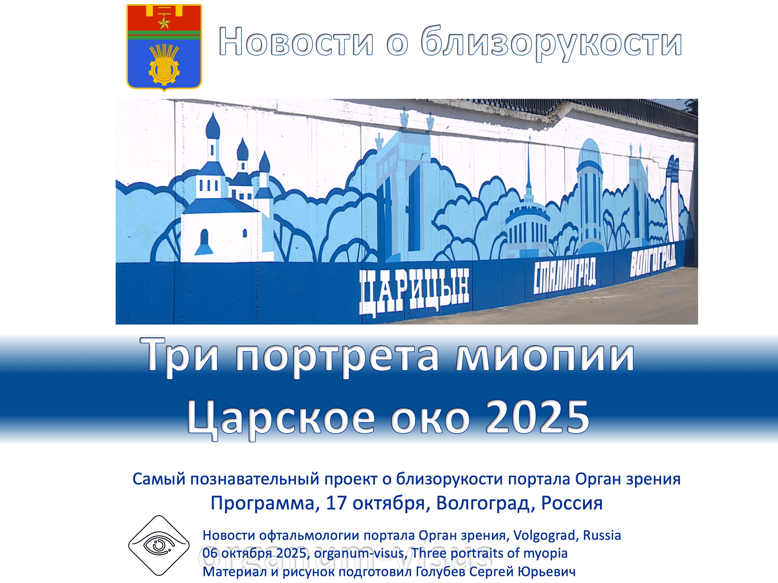 Три портрета миопии. Царское око 2024. Отчет о конференции офтальмологов в Волгограде, 04 октября. Проект ведет офтальмолог Голубев Сергей Юрьевич. News about myopia. Cognitive project of the portal Organum-visus, Three portraits of myopia, Russia, Volgograd. Report. Новости о близорукости. Смотри Календарь конференций по офтальмологии на video.organum-visus.ru