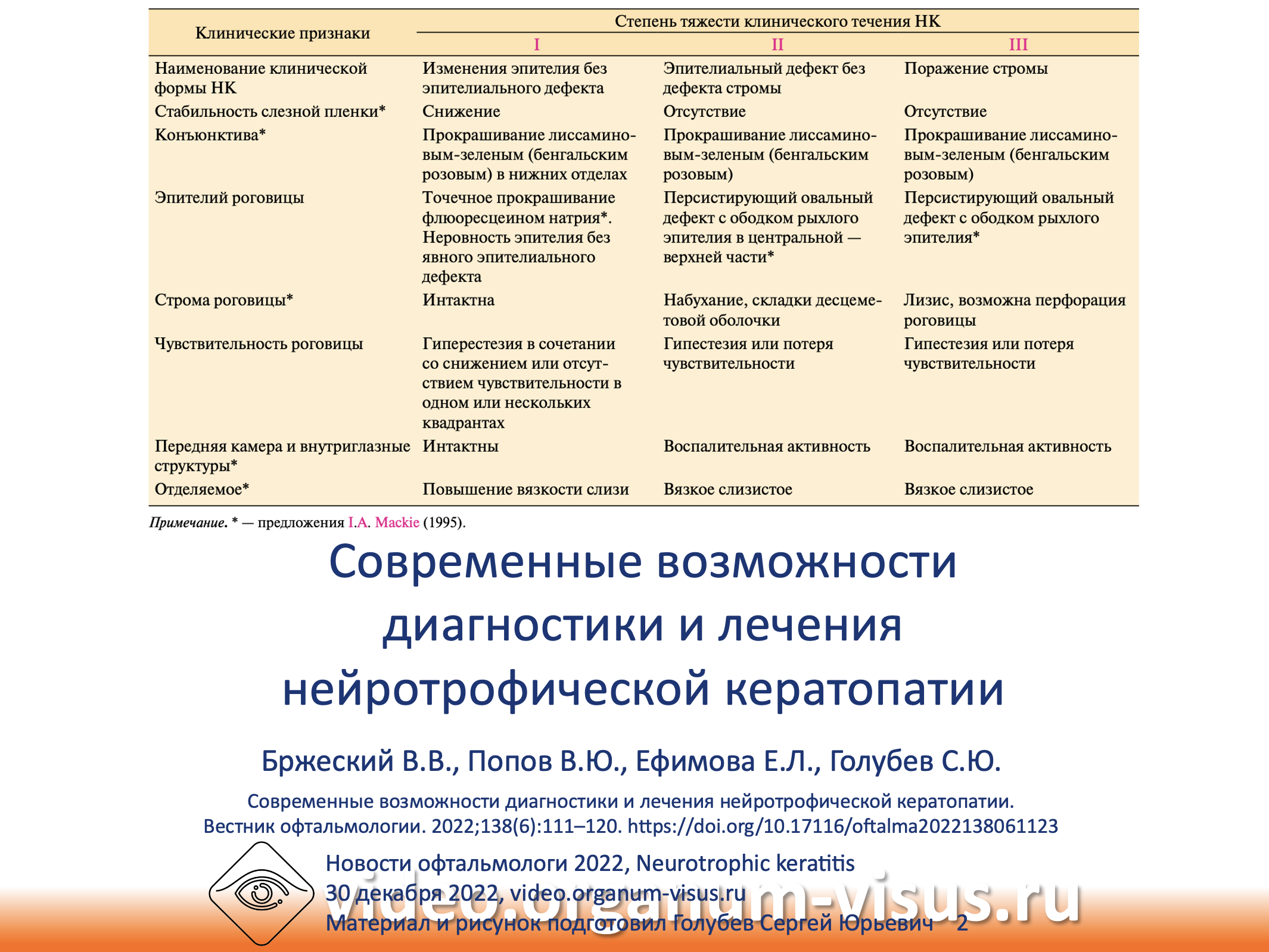 Современные возможности диагностики и лечения нейротрофического кератита, Modern possibilities of diagnostics and treatment of neurotrophic keratitis. Нейротрофический кератит, Neurotrophic keratitis. Смотри вебинар для офтальмологов 05 октября 2022 года в 15.00 по московскому времени. Научный руководитель профессор Бржеский Владимир Всеволодович, Санкт-Петербург, Россия.