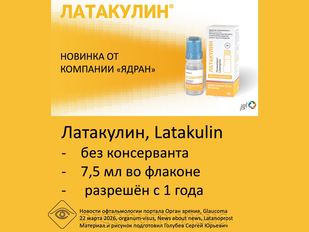 Новости глаукомы. Новый латанопрост Латакулин.