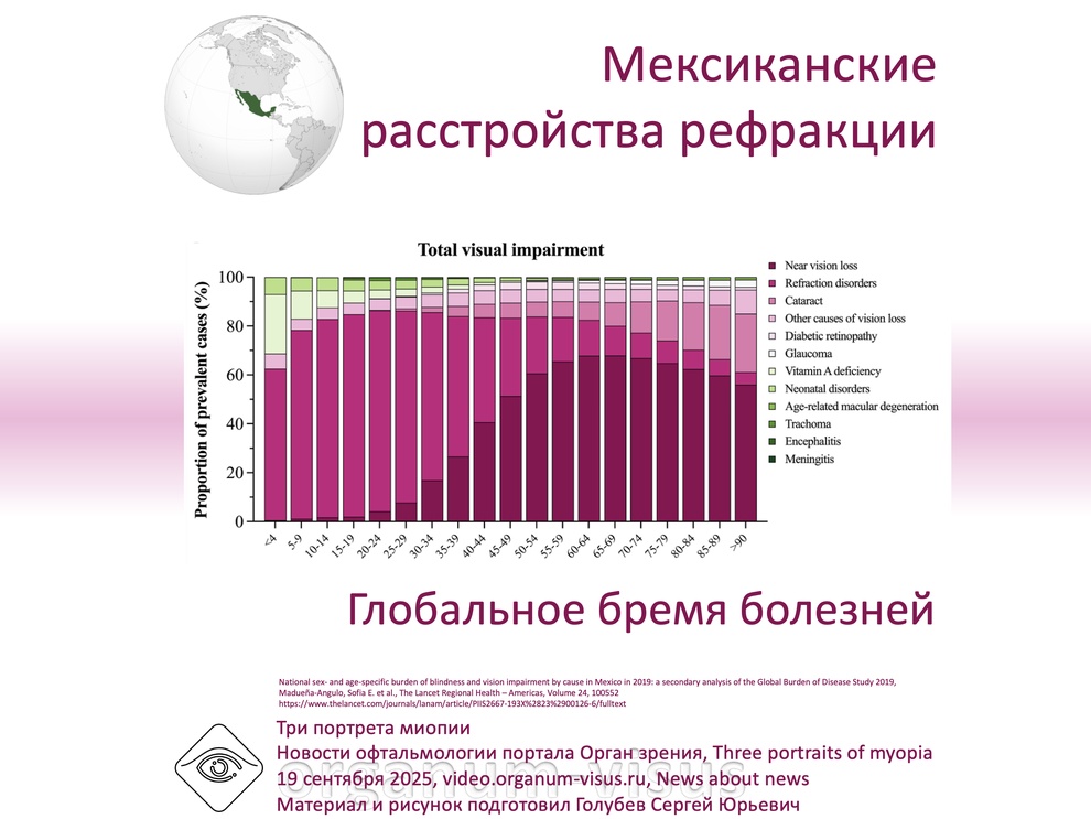 По результатам оценки глобального бремени болезней в Мексике в 2019 году бремя слепоты и нарушений зрения оценивали в 11,01 млн человек.