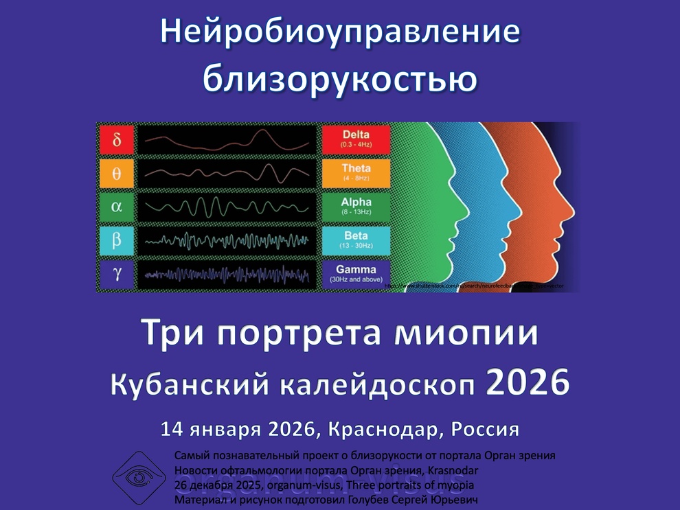 О современных возможностях коррекции подобных нарушений мы расскажем на мастер-классе Нейробиоуправление близорукостью в рамках очной конференции Три портрета миопии. Кубанский калейдоскоп 2026, Читай Программа.