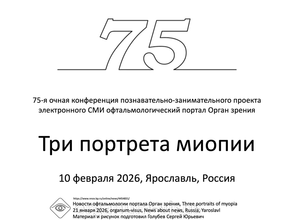 В славном 1000 летнем Ярославле 10 февраля 2026 года пройдет первая в этом городе и семьдесят пятая по счету очная конференция познавательно-занимательного проекта электронного СМИ офтальмологический портал Орган зрения organum-visus, Смотри Архив проекта Три портрета миопии, Читай Программу, Смотри Отчет.